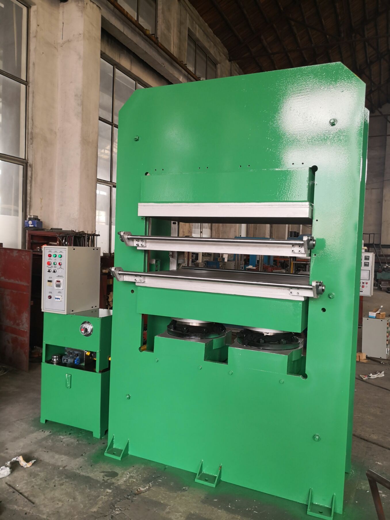 3.This type of machine is control by PLC , valcanization process can achieve many procedures for automatic control ,can automatically detect and adjust hot plate rubber machine.